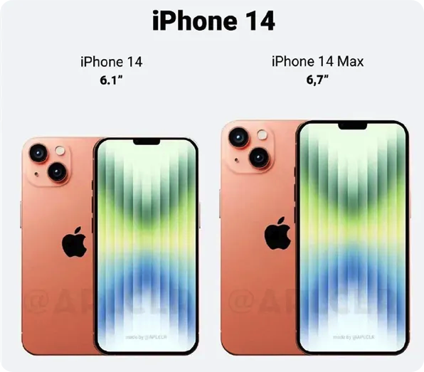 首先,也是最明顯的,iPhone 14 非 Pro 型號(hào)正在從 mini 和標(biāo)準(zhǔn)型號(hào)變?yōu)闃?biāo)準(zhǔn)版和 Max 型號(hào)。